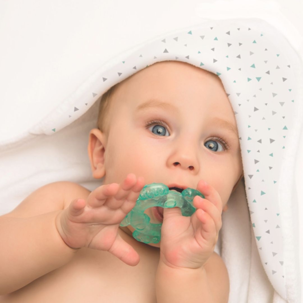 - Estampados o colores atractivos. Elige una toalla con capucha que tenga un diseño bonito que estimule la mente de tu pequeño desde bien temprano. Además, así podrás usarla tanto dentro como fuera de casa, pues cuando se bañe en la piscina o la playa también podrás secarle con ella.