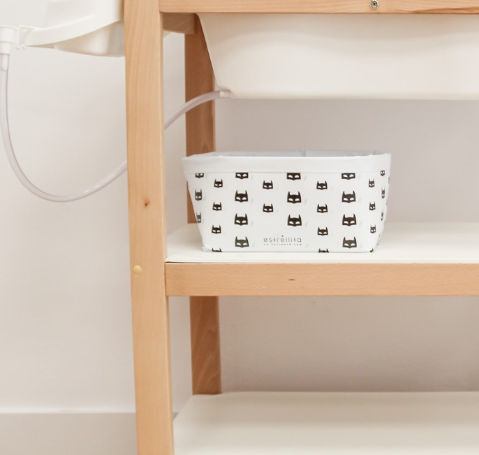 Este cesto pequeño de almacenaje Batman es un objeto ideal para guardar los pañales y las toallitas que se usan con el cambio del pañal de nuestro bebé. También puedes guardar en su interior las cremas, aceites, pomadas, polvos de talco, o cualquier otro complemento que emplees en estos gestos cotidianos del cuidado de los pequeños y las pequeñas.
