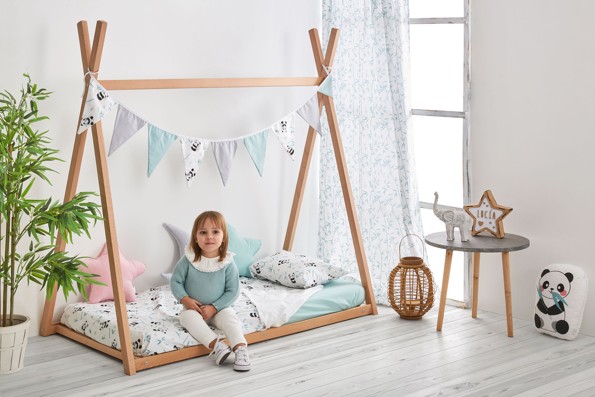 Los colores y tejidos que se han empleado en la realización de estos banderines son originales de Estrellita La Valiente. De ahí que también se hayan empleado en la realización de otros muchos productos que tenemos a la venta en nuestra tienda. Cosas como: como cortinas, cojines, sábanas, colchas, fundas nórdicas, etc. Así que, si te gusta alguno de ellos, no tienes más que visitar nuestra página web para poder encontrarlos. Con ello podrás completar tu proyecto decorativo de la manera más sencilla.