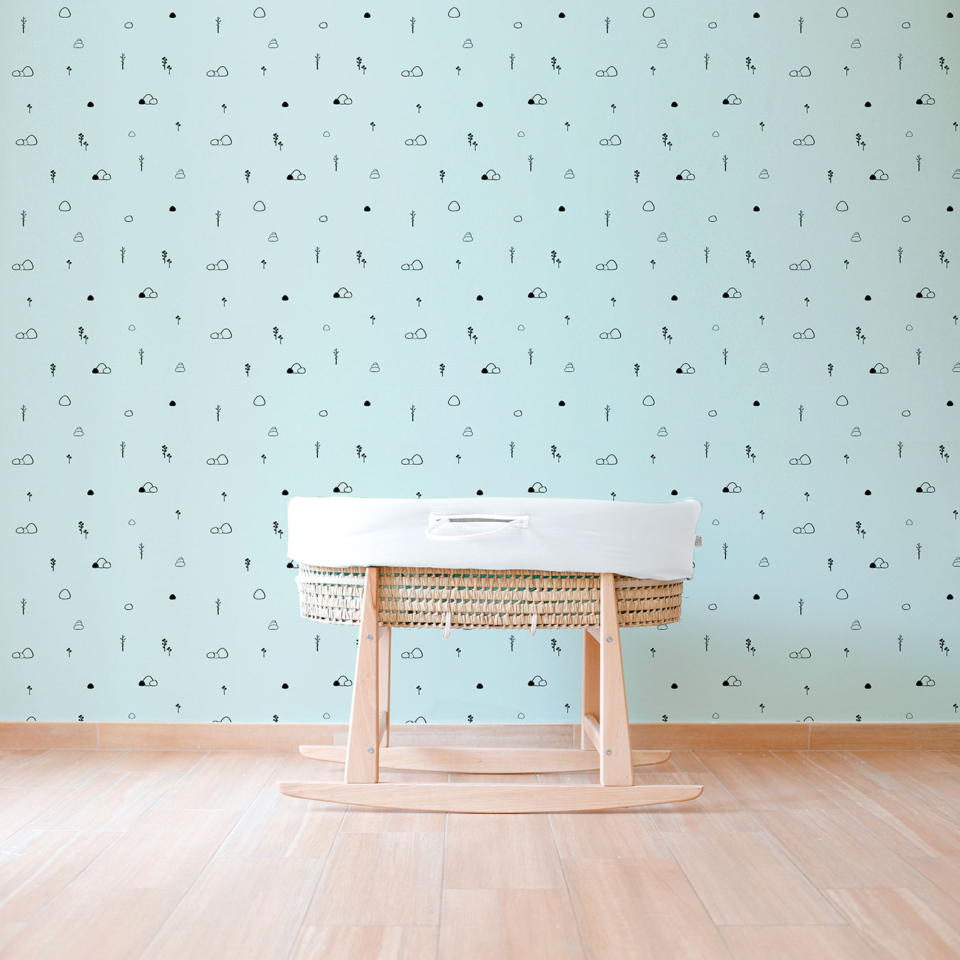 Vestidura de capazo y organizador cuadro vichy mint gris con manta polar y cojín estrella tejido mint. Tejido 100% algodón orgánico.