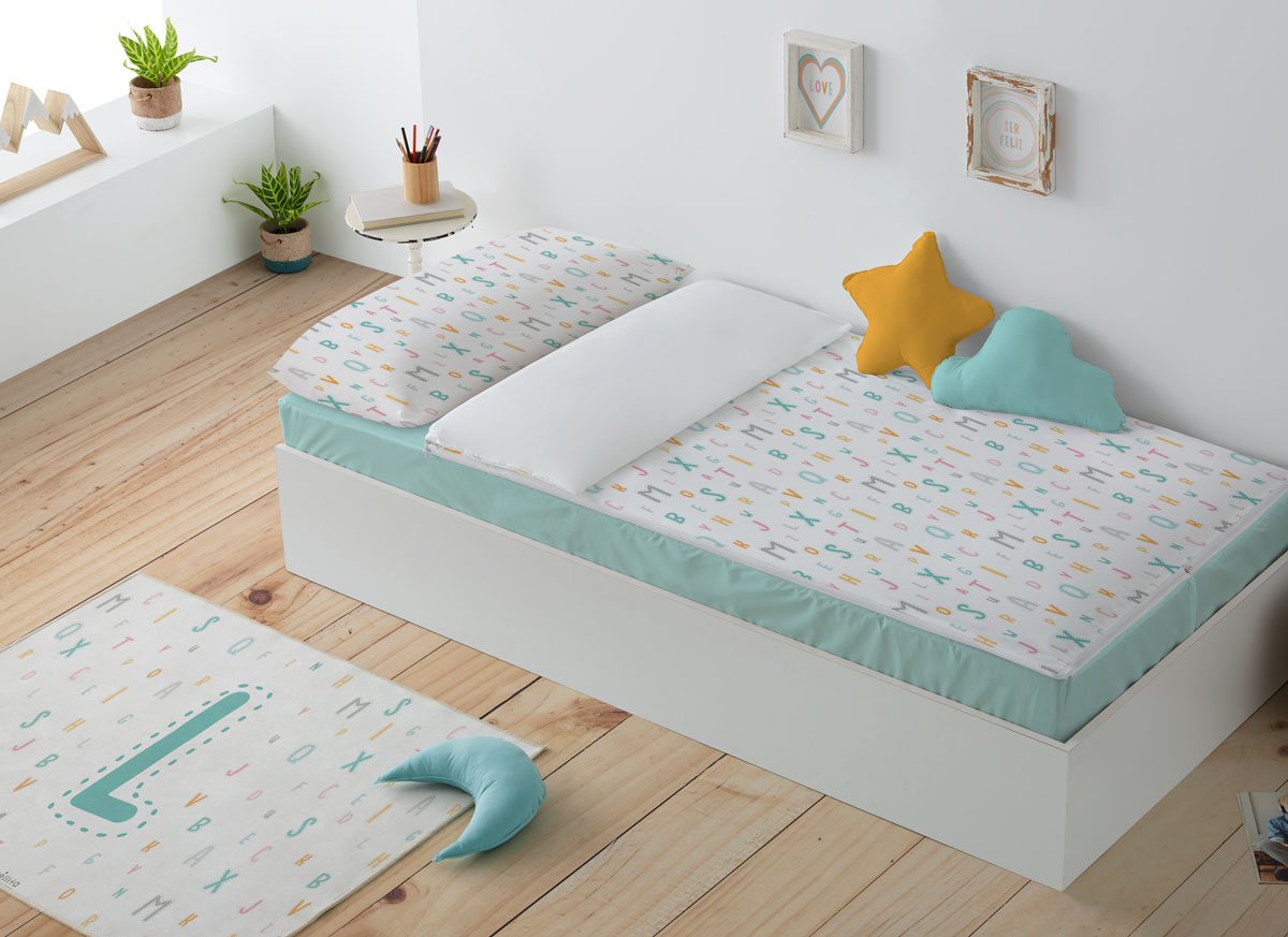 Saco nórdico cama Abecedario bajera mint
