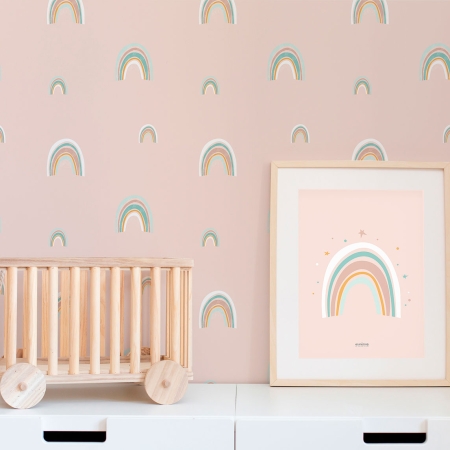 El vinilo arcoíris es un complemento decorativo muy divertido que se puede colocar en paredes, tanto si son lisas y con otro tipo de terminaciones rugosas como las que han sido trabajadas con gotelé. También se puede colocar sobre superficies de mobiliario para dar un toque único y divertido a la habitación de los más pequeños.